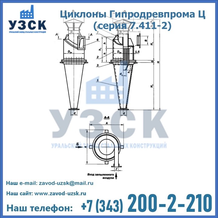 Циклоны Гипродревпрома Ц (серия 7.411-2) высокого качества можно купить в компании «УЗСК» в Пскове. Наши специалисты предоставят всю необходимую информацию информацию и помогут с выбором модели циклона. Подробные технические характеристики, конструкцию, параметры, ассортимент и стоимость продукции можно также найти на сайте УЗСК.